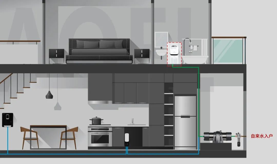 如果對水質有更高要求,家中有老人、孕嬰等特殊群體,建議選擇前置過濾器+中央凈水機+軟水機+末端凈水器+速熱管線機,對水質進一步過濾。