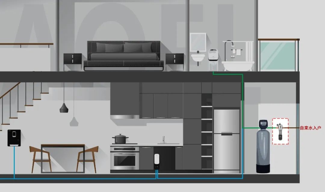 其實全屋凈水并不復雜,如果要安裝全屋凈水系統,建議您從一開始的裝修進程就開始規劃。預留電源、排水口、放置空間,這樣才能達到美觀、實用兩不誤。