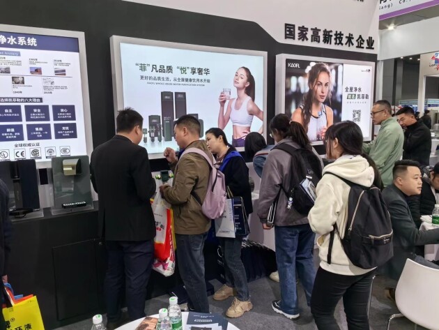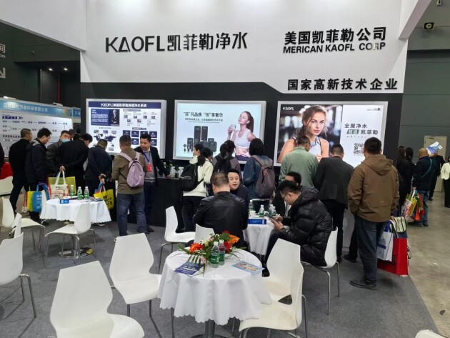 在凱菲勒凈水展臺,人流不斷,團隊成員們以熱忱的笑容和專業的解答,向參觀者展示了凈水器的獨特之處與實用功能。